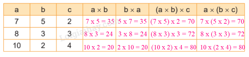 – Khi nhân một tích hai số với số thứ ba, ta có thể nhân số thứ nhất với tích của số thứ hai và thứ ba: