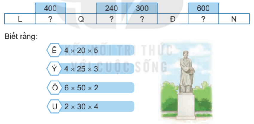 Ô: 6 x 50 x 2 = 6 x (50 x 2) = 6 x 100 = 600