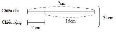 Một hình chữ nhật có chu vi là $68cm$. Chiều rộng kém chiều dài là $16cm$ . Vậy diện tích hình chữ nhật đó là: