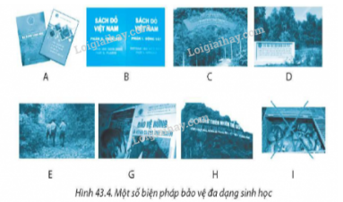 Hãy nêu các nhóm biện pháp bảo vệ đa dạng sinh học. Xác định các hình ảnh trong Hình 43.4 tương ứng với từng nhóm biện pháp nói trên. Ở địa phương nơi em sinh sống, các biện pháp nào đã được sử dụng để bảo vệ đa dạng sinh học?