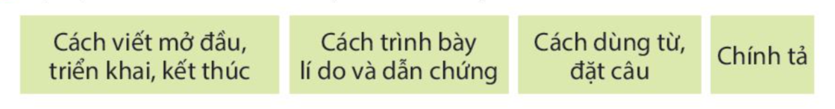Em xem lại cách viết mở đầu, triển khai, kết thúc; cách trình bày lí do và dẫn chứng; cách dùng từ, đặt câu; chính tả. Kết hợp với nhận xét của giáo viên và sửa chữa bài làm cho phù hợp.