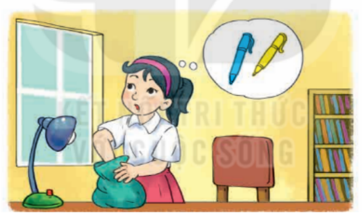 –  Mai lấy được 1 chiếc bút màu xanh, 1 chiếc bút màu vàng.