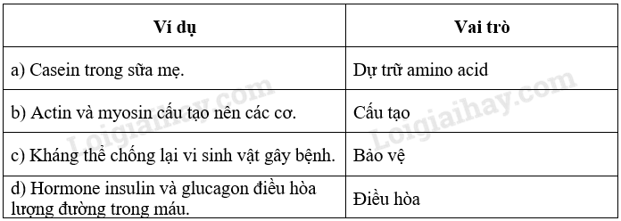 16. Xác định các ví dụ sau đây thuộc vai trò nào của protein.
