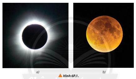 Hình 6P.1a là hiện tượng nhật thực, hình 6P.1b là hiện tượng nguyệt htuwcj