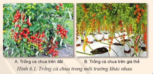 Em hãy cho biết sự khác nhau về môi trường sống của cây cà chua trong Hình 6.1A và 6.1B