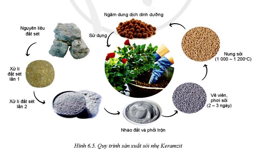 1. Quy trình sản xuất sỏi nhẹ keramzit trong Hình 6.5.