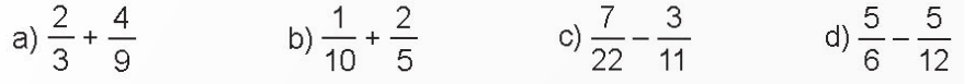 \({\text{a)}}\;\frac{2}{3} + \frac{4}{9} = \frac{6}{9} + \frac{4}{9} = \frac{{10}}{9}\)