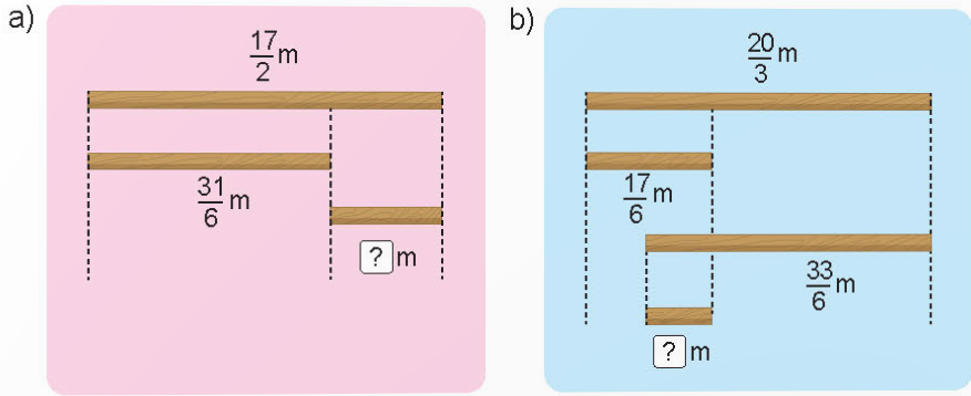 Quan sát hình vẽ và thực hiện các phép tính cộng, trừ hai phân số để tìm được phân số ở dấu ?