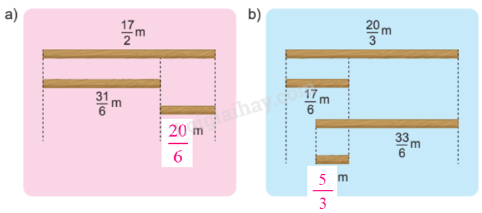 Chiều dài khúc gỗ còn lại = chiều dài cây gỗ – chiều dài hai khúc gỗ.