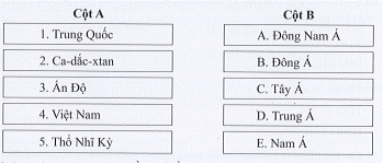 Câu 7. Hãy nối tên quốc gia ở cột A với tên khu vực tương ứng ở cột B sao cho đúng