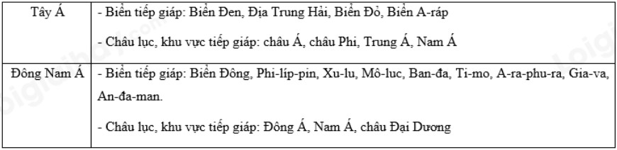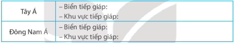 3. Kể tên các biển và khu vực tiếp giáp với Tây Á và Đông Nam Á.