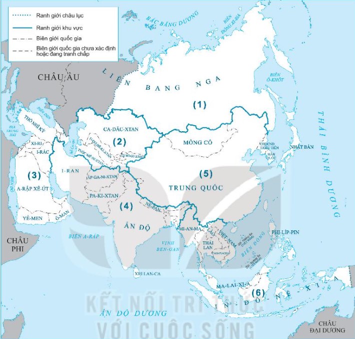 Tên của các khu vực của châu Á được đánh số trên bản đồ sau: