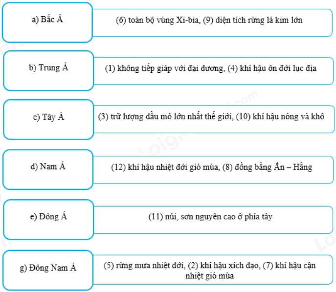 Em hãy liên hệ kiến thức về đặc điểm tự nhiên các khu vực ở châu Á
