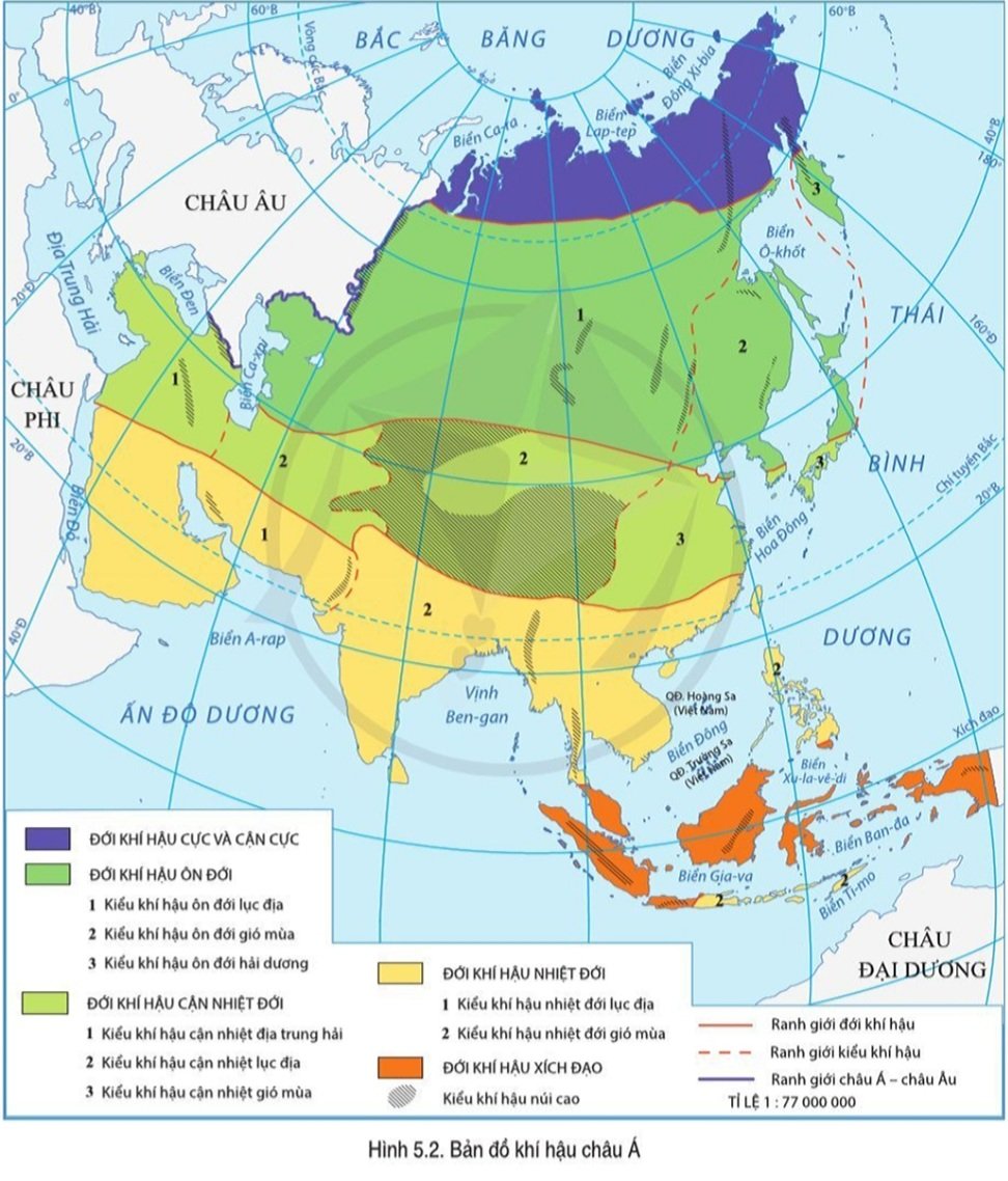 + Đông Nam Á hải đảo: đại bộ phận có khí hậu xích đạo, nóng và mưa đều quanh năm.
