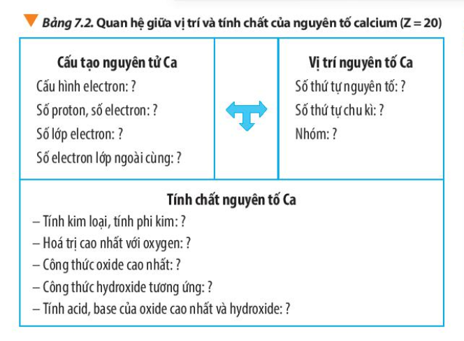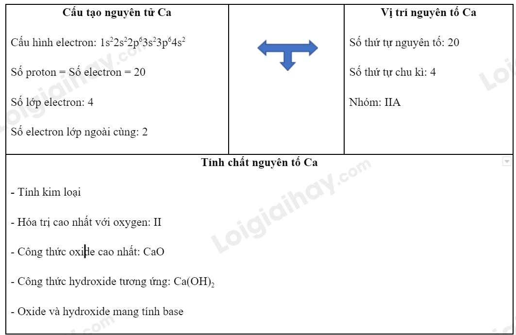 Bước 4: Từ vị trí của Ca => Các tính chất của nguyên tố Ca