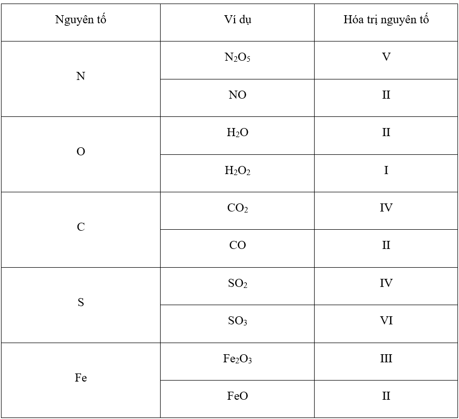 D. Hoá trị của nguyên tố bằng số nguyên tử O liên kết với nguyên tố đó nhân với 2.