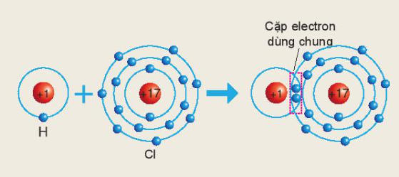 Sơ đồ sau mô tả sự hình thành liên kết cộng hóa trị trong phân tử HCl: