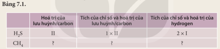 2. Đối với phân tử CH4, thực hiện tương tự như với phân tử H2S. Em hãy so sánh về tích của chỉ số và hóa trị của các nguyên tố thành phần