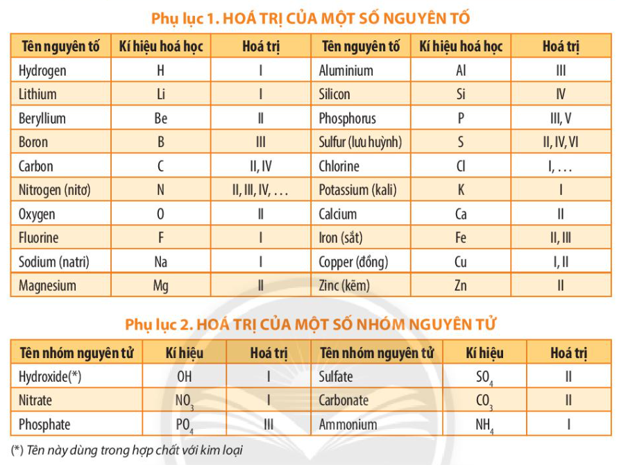 Dựa vào bảng hóa trị ở Phụ lục trang 187, em hãy hoàn thành bảng sau: