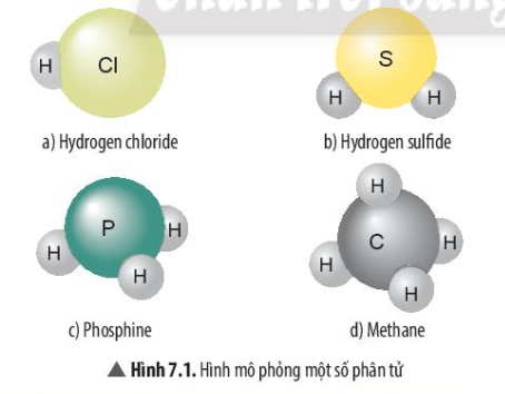 Quan sát Hình 7.1, đếm số nguyên tử H liên kết với các nguyên tử Cl, S, P, C trong phân tử