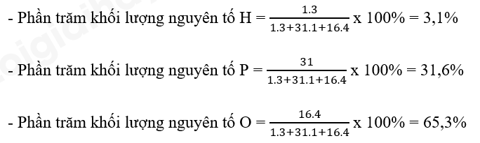 Viết công thức hóa học của phosphoric acid có cấu tạo từ hydrogen và nhóm phosphate. Trong phosphoric aicd, nguyên tố nào có phần trăm lớn nhất?