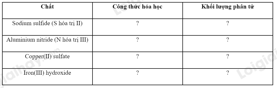 Dựa vào bảng hóa trị ở Phụ lục trang 187, em hãy hoàn thành bảng sau: