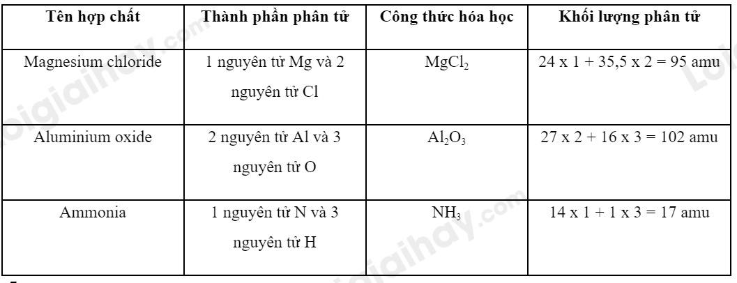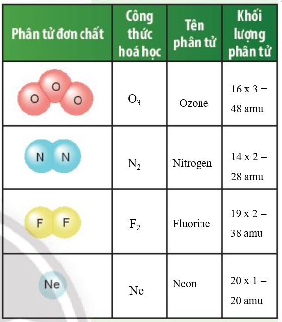 – Khối lượng phân tử = tổng khối lượng các nguyên tử tạo nên phân tử đó