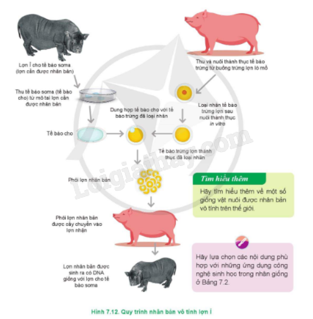 Hãy nêu quy trình để tạo ra những con lợn Ỉ nhân bản có trong hình 7.12.