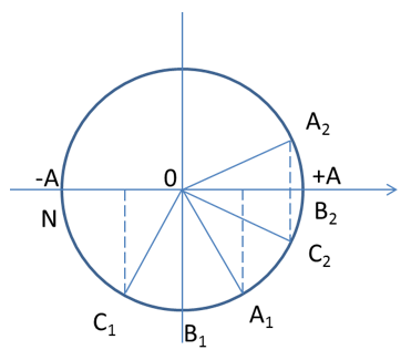 B quay góc 900 => Tại t2 li độ B chính bằng biên độ