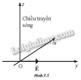 Một sóng điện tử truyền theo phương thẳng đứng, chiếu từ dưới lên trên theo chiều dương của trục Oz (Hình 7.1). Tại một thời điểm xác định, vectơ cường độ điện trường hướng theo chiều dương của trục Oy. Vectơ cường độ từ trường