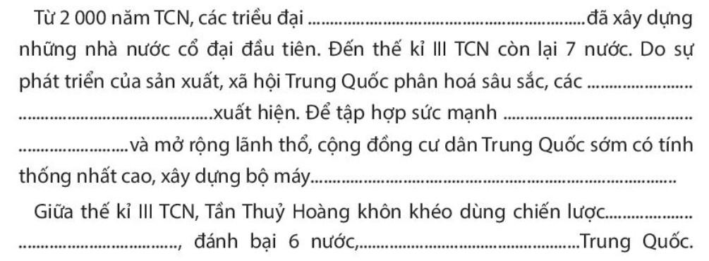 Câu 2. Chọn các từ hoặc cụm từ dưới đây, điền vào chỗ trống (…) cho phù hợp để cho biết vì sao ở Trung Quốc, chế độ quân chủ chuyên chế tập quyền sớm hình thành.