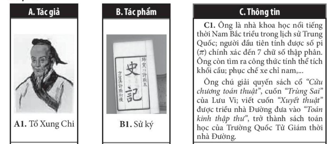 Câu 7. Nối tác giả (cột A) với tác phẩm tiêu biểu (cột B) và thông tin phù hợp ở cột C