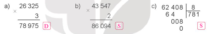 Kiểm tra cách đặt tính và tính rồi điền Đ hoặc S vào ô trống.