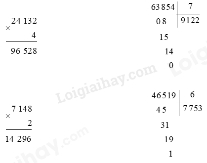 – Đối với phép chia: Thực hiện chia từ trái sang phải.