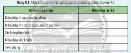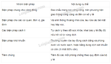 Hãy cho biết các biện pháp phòng chống bệnh Covid-19 đã được triển khai thực hiện bằng cách hoàn thành bảng sau. Trong đó, em đã thực hiện những biện pháp nào để phòng chống bệnh cho bản thân và cộng đồng?