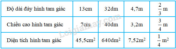 Muốn tính diện tích hình tam giác ta lấy độ dài đáy nhân với chiều cao (cùng một đơn vị đo) rồi chia cho 2.