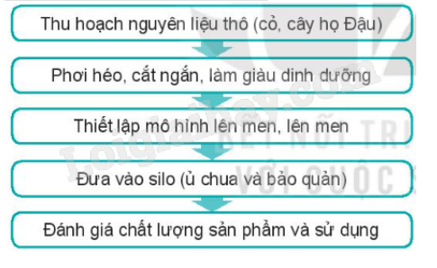 Quan sát Hình 9.5 và mô tả các bước bảo quản thức ăn chăn nuôi bằng silo.