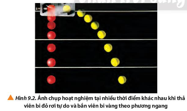 1. Quan sát kết quả thí nghiệm trong Hình 9.2 và nhận xét về chuyển động của hai viên bi.
