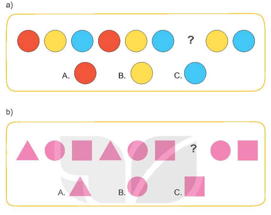 Vậy hình cần điền vào dấu “?” là hình tròn màu đỏ.