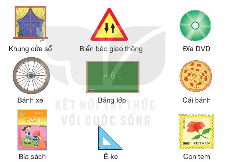+ Đồ vật có dạng hình vuông là: khung cửa sổ, con tem.