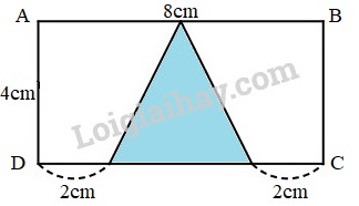 Phần tô đậm là hình tam giác có chiều cao bằng chiều rộng của hình chữ nhật và độ dài đáy bằng 8 – (2 + 2) = 4cm.