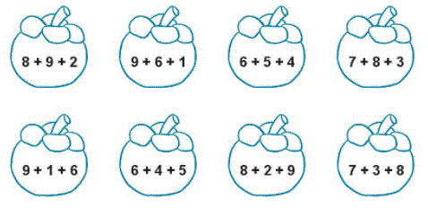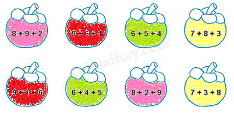 Tô màu giống nhau cho những quả có tổng bằng nhau.