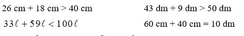 Tính kết quả các phép cộng rồi so sánh với vế phải và điền dấu >, <, = thích hợp vào chỗ trống.