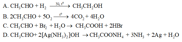 Trong 4 đáp án trên, chỉ có H2 thể hiện tính khử khi phản ứng với acetaldehyde. Do đó, acetaldehyde thể hiện tính oxi hoá trong phản ứng với H2.