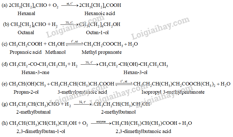 Hoàn thành phản ứng (kèm điều kiện phản ứng nếu có) và gọi tên sản phẩm các chất trong mỗi phản ứng sau:
