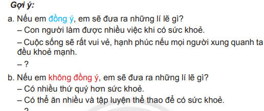 Cùng bạn tranh luận, bày tỏ ý kiến của em về câu nói: Sức khỏe là vốn quý của con người.