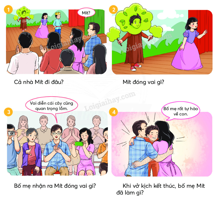 Lớp của Mít biểu diễn kịch. Cả nhà háo hức tới xem Mít biểu diễn.