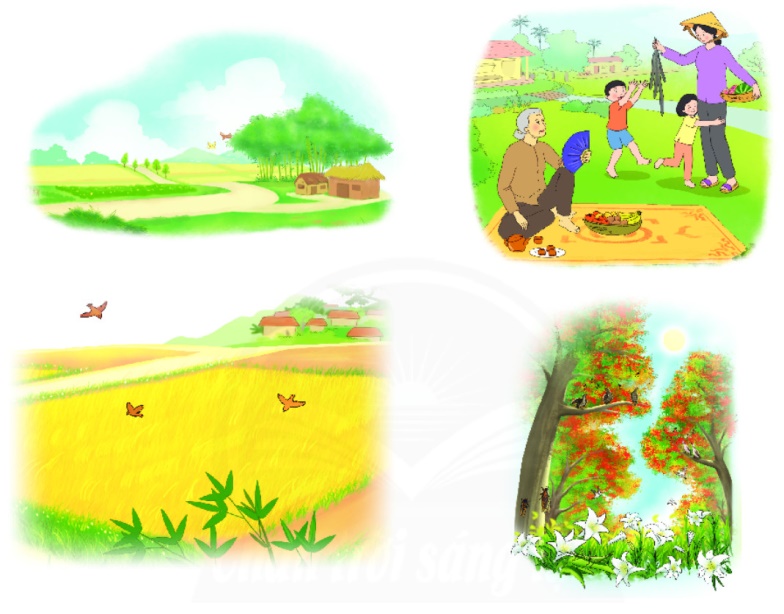 Câu 1: Dựa vào tranh gợi ý, đọc thuộc lòng đoạn thơ có nội dung tương ứng. Nói tên bài có đoạn thơ em đọc.
