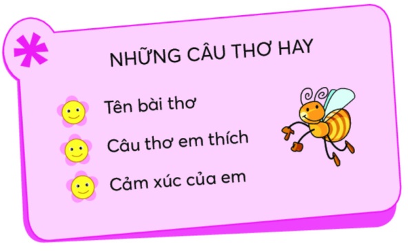 Câu 2: Trao đổi với bạn về những câu thơ em thích theo gợi ý:
