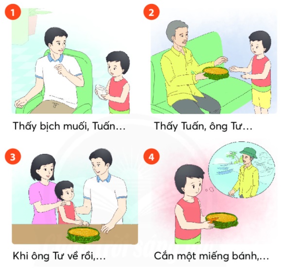 1. Từ ngoài quê vào, ông Tư biếu gia đình Tuấn một bịch muối hạt làm quà. Thấy bịch muối, Tuấn buột miệng
